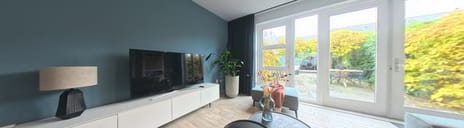 De lichte, brede woonkamer is in 2022 volledig gemoderniseerd: wanden en plafonds zijn strak gestuukt en de vloer is voorzien van vloerverwarming met een stijlvolle keramische tegelvloer – luxe, comfortabel en onderhoudsvriendelijk. Vanuit de woonkamer is er toegang tot de zonnige achtertuin.