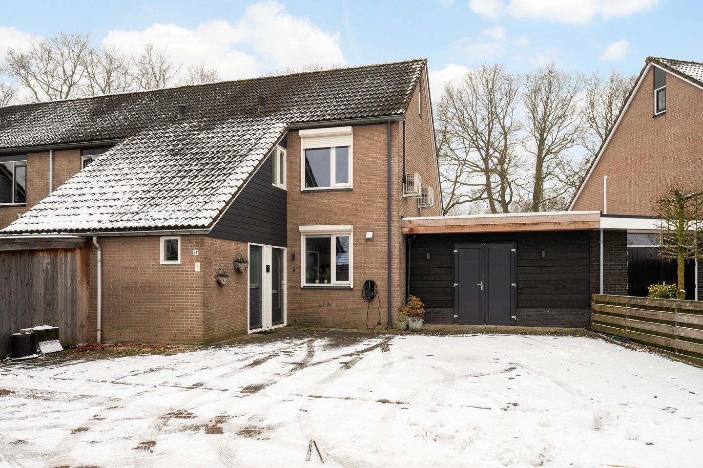 - Aangebouwde houten garage en parkeerplaats