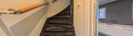 Op de verdieping tellen we drie slaapkamers die allemaal een vaste kast hebben en recent zijn voorzien van kunststof kozijnen. In één van de kasten zit handig de Intergas combiketel uit 2017 weggewerkt. De badkamer ernaast heeft dan ook in een mum van tijd warm water en is geheel betegeld. Verder voorzien van een ligbad met douche, wastafelmeubel en een designradiator. Ook is hier plaats voor de wasmachine. Via een vlizotrap komen we op de zolder (geen stahoogte) waar je veel van je spullen gemakkelijk kwijt kan.