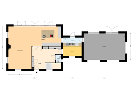 Een statige entree verwelkomt u in een hal met een vloer van fraaie marmeren tegels, een voorbode van de elegantie die door het hele huis heerst. Op de begane grond strekt zich een zee van ruimte uit: een royale leefruimte met een open eetkamer, een sfeervolle woonkamer voorzien van een fraaie eikenvloer, de eigentijdse keuken compleet met een prachtig kookeiland en luxe inbouwapparatuur. Grote raamdeuren openen naar het terras, waar je kunt genieten van Zeeuwse vergezichten over het uitgestrekte polderlandschap. Vanuit de bijkeuken kom u in de garage met twee automatische poorten en ruimte voor twee auto's. Ook is er een kantoor aanwezig, evenals een separaat gastentoilet.