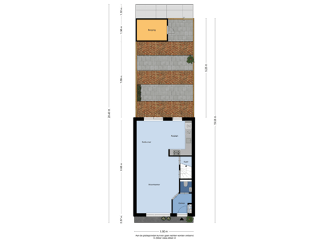 - 46 m² (8,60 meter diep en 5,30 meter breed)