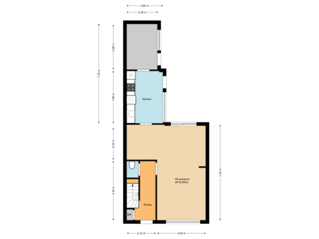 - 28 m² (7,00 meter diep en 4,00 meter breed)