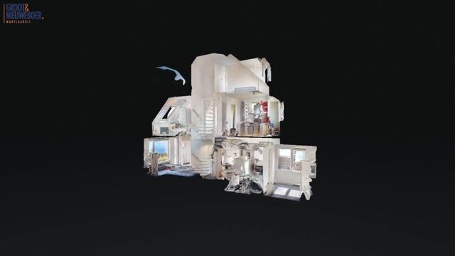 Begane grond: entree, hal, meterkast, Z-vormige living, halfopen keuken met moderne keukenunit voorzien van inbouwapparatuur, tussenportaal met toilet en trapopgang, aangebouwde bijkeuken (praktisch voor de wasmachine en droger en als tochtsluis in de winter).