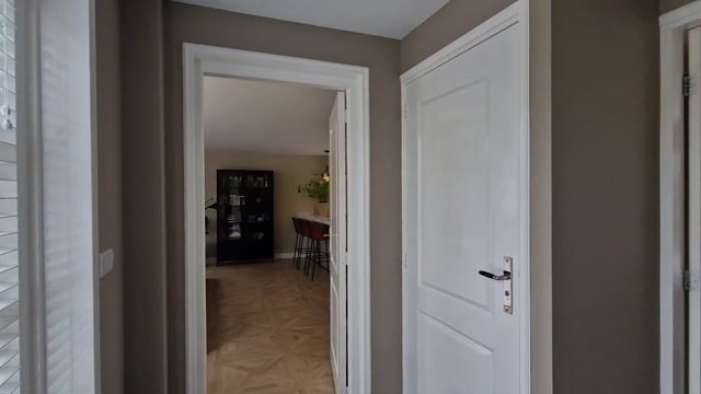 Bij aankomst valt direct de ruime opzet op, met een brede oprit en een verzorgde voortuin. Binnenkomst in de hal geeft direct toegang tot een strak afgewerkt toilet en de trapopgang. De woonkamer is royaal opgezet en kenmerkt zich door een prachtige lichtinval dankzij de vele ramen en openslaande deuren naar buiten. De warme vloer, lichte kleuren en de pelletkachel zorgen voor een sfeervolle en comfortabele leefruimte. De zithoek en eethoek lopen naadloos in elkaar over, waardoor een open en uitnodigend geheel ontstaat.
