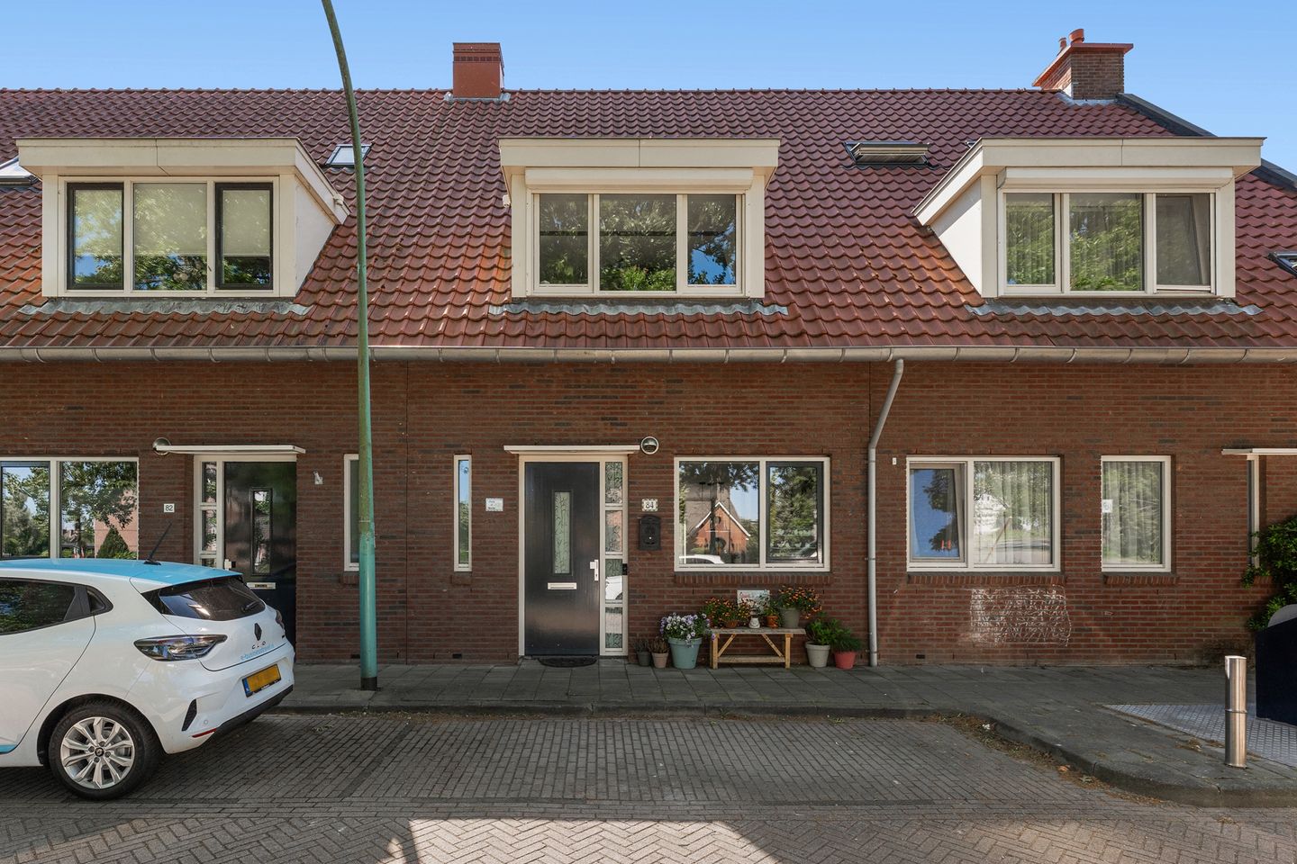 Voortuin: De woning beschikt over een functionele entree die een verzorgde indruk maakt. Voor de gevel, op de stoep, zorgen een paar gezellige bloempotten voor een vriendelijk welkom en een vleugje kleur.