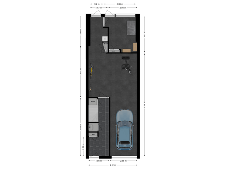 Maatvoering: Circa 2.58 x 4.18/3.14m