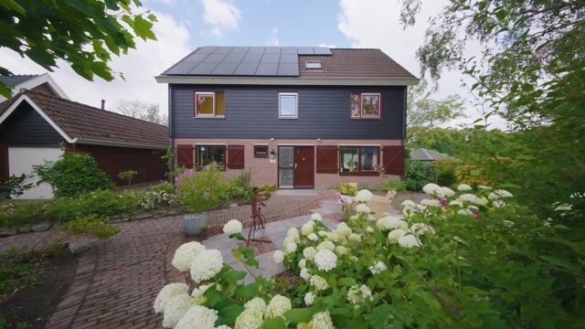 De woning beschikt over een ruime entreehal met toegang tot het toilet, een garderobe, meterkast en trapopgang. Vanuit de hal komt u in de royale woonkamer met een aparte zithoek. Grote raampartijen zorgen voor veel daglicht en een houtkachel geeft de ruimte extra sfeer. De stenen vloer is robuust en praktisch. Via de schuifpui bereikt u de diepe achtertuin, die op het zuidwesten is gericht.
