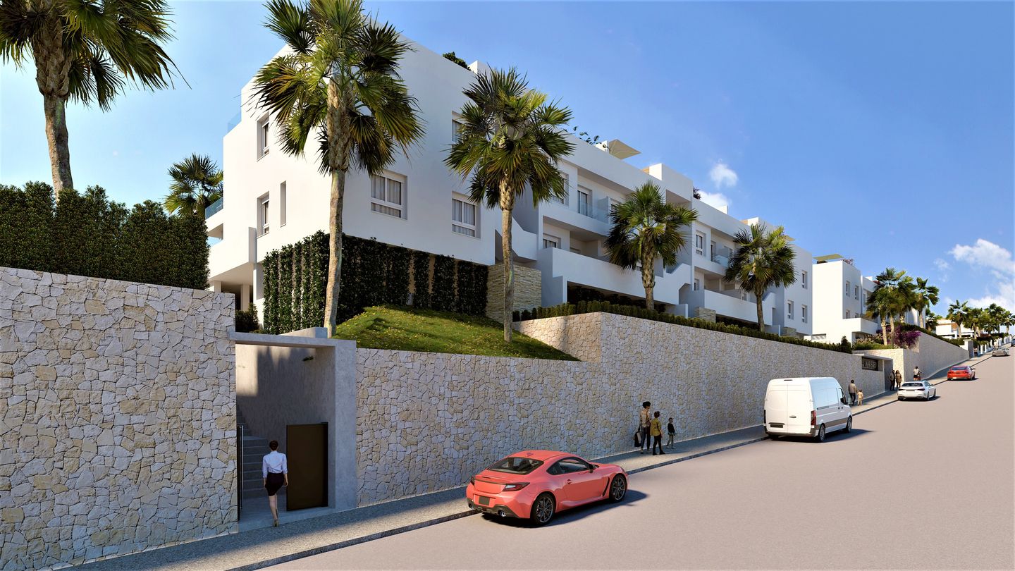 De begane grond appartementen met 2-3 slaapkamers en 2 badkamers waarvan 1 en-suite zijn omringd door verschillende soorten mooie Villa’s. Dit geeft de wijk een zeer luxe uitstraling. Er is een fraai aangelegde tuin/terras aan de voor- en achterzijde van totaal 63 m2 bij de 2 slaapkamer appartementen, bij de 3 slaapkamer appartementen is dit 86 m2. De woningen zijn voorzien van een kookeiland, vloerverwarming in de badkamers en het gehele appartement heeft een geïntegreerd airco systeem. Daarnaast is er nog een ruime aparte wasruimte / berging. De gemeenschappelijke ruimte heeft naast een groot zwembad en heerlijke zonneweide een erg mooie en met zorg aangelegde tuin met bijzondere beplanting en afwisselend rotsachtige natuurstenen muurtjes gebruikt om de hoogteverschillen te verfraaien. Een parkeerplaats met berging in de ondergrondse parkeergarage is bij deze woningen een optie.