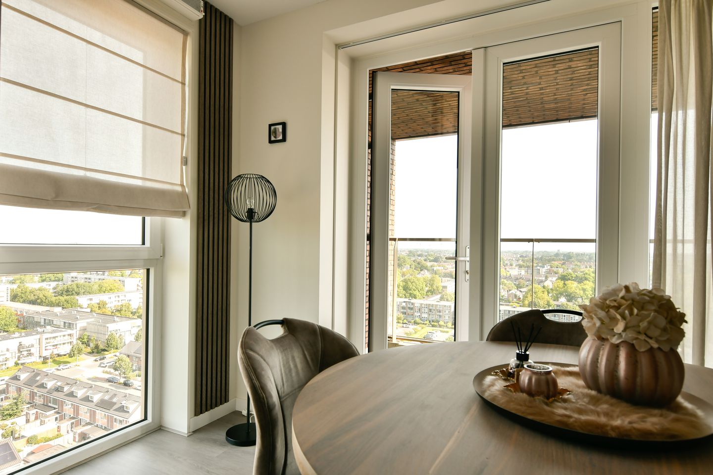 op de hoogste verdieping gelegen luxe appartement met 2 slaapkamers, een grote badkamer en een breed dubbel balkon dat uitkijkt richting de binnenstad van Alkmaar en naar de duinen van Egmond aan Zee.