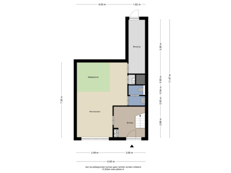 - 43 m² (6,41 meter diep en 6,65 meter breed)