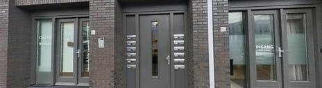 Verzorgde, gezamenlijke entree (gedeeld met vijf appartementen) met bellentableau en video-intercom, brievenbussen, lift en trappenhuis. Vanuit hier is tevens de afgesloten parkeerkelder bereikbaar met toegang tot de gemeenschappelijke fietsenberging, waar plaats is voor twee fietsen per appartement.
