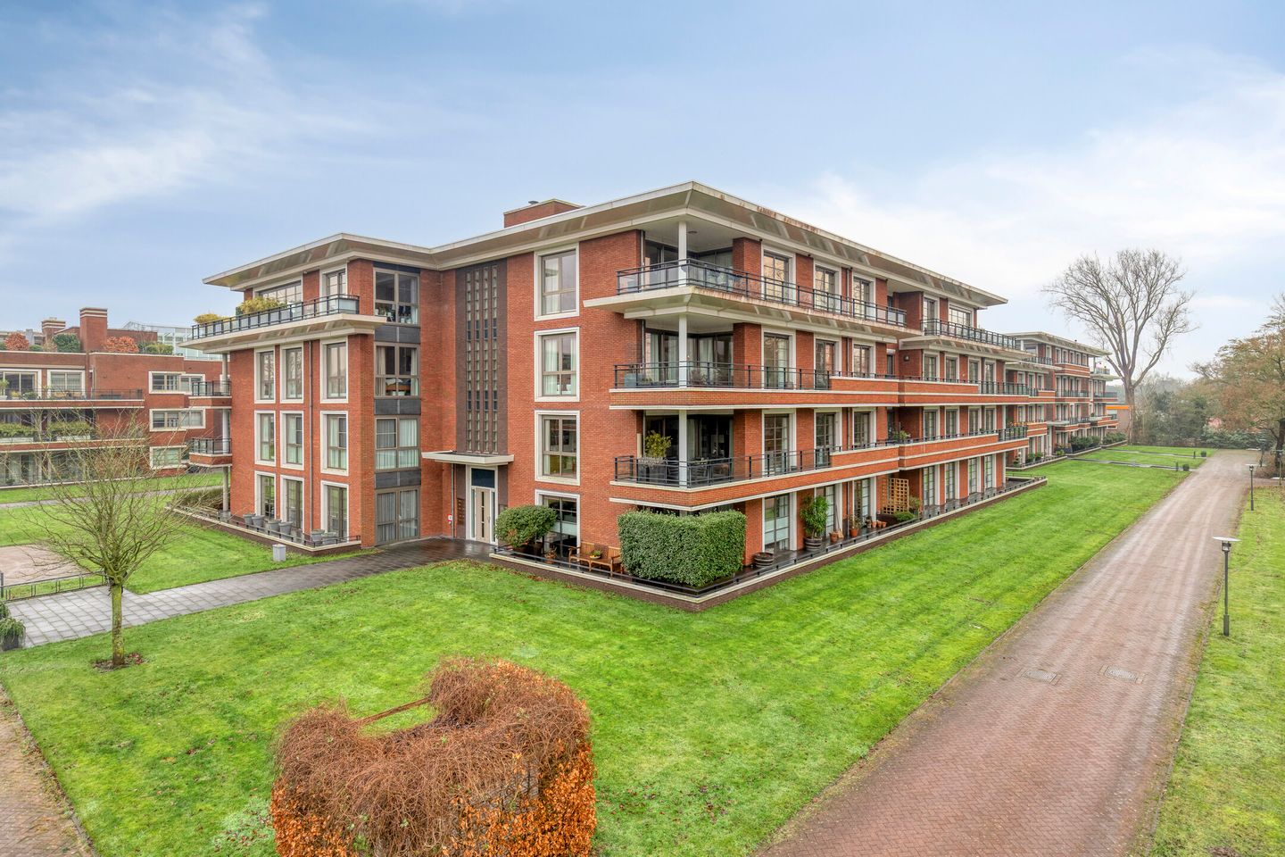 Aan de rechterzijde van het appartement bevinden zich drie ruime slaapkamers. Alle slaapkamers zijn voorzien van een aluminium schuifpui met directe toegang tot het terras en bieden een prachtig uitzicht op het groen. Eén van de slaapkamers beschikt bovendien over praktische inbouwkasten, een wastafel en aansluitingen om desgewenst een tweede badkamer te realiseren.