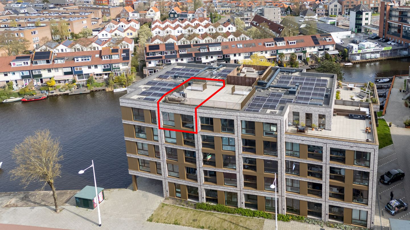 Een van de absolute eyecatchers van dit appartement is het dakterras van maar liefst