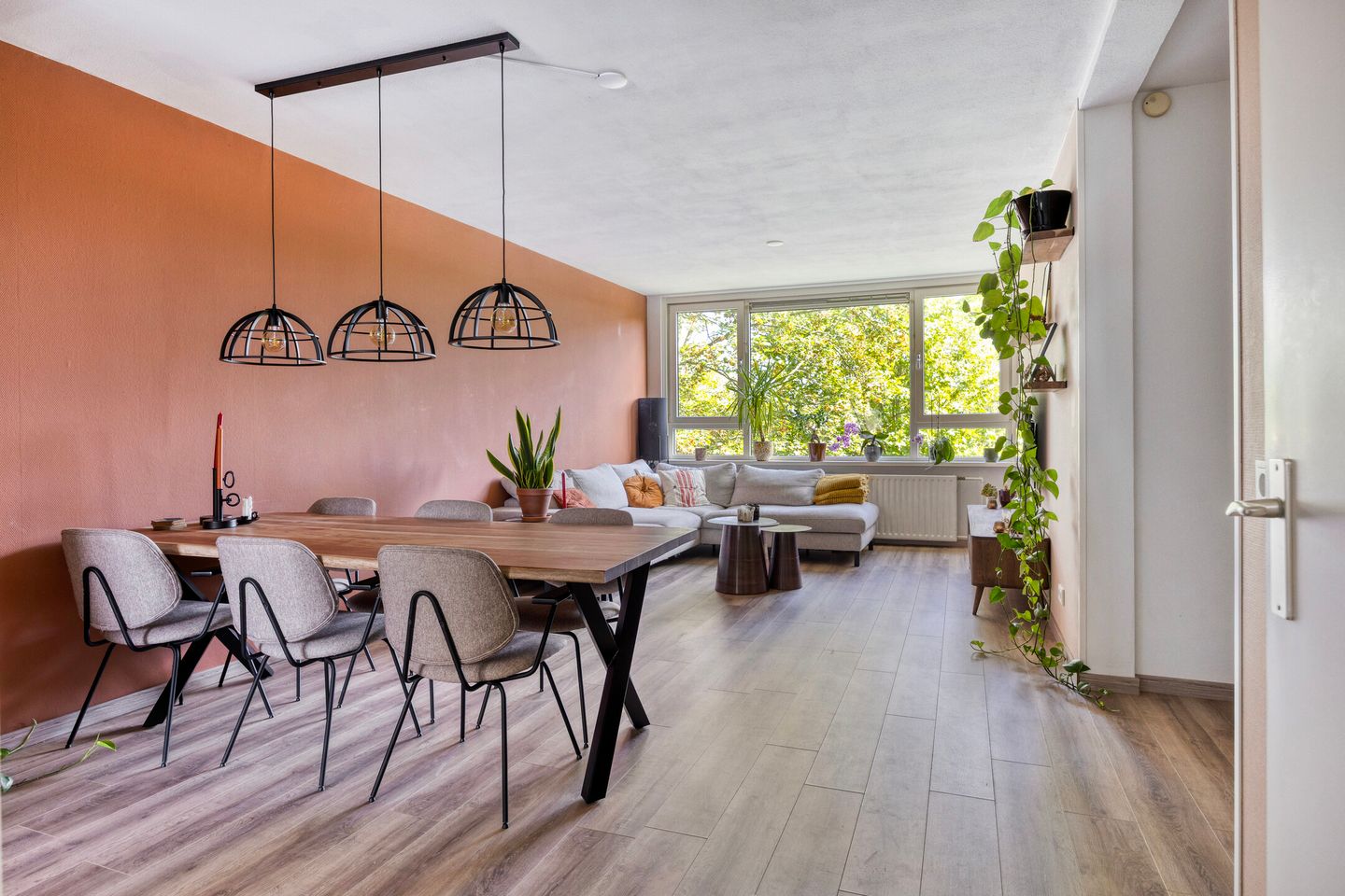 De living is licht en overzichtelijk ingedeeld, met voldoende ruimte voor een royale zithoek en een eettafel. Er is een prettige lichtinval door de grote raampartijen. De kozijnen in het appartement zijn grotendeels uitgevoerd in kunststof. Via de woonkamer zijn de grootste slaapkamer, badkamer en separate toilet te bereiken. Ook is er een aparte wasruimte voor wasmachine en droger. Wel zo handig.