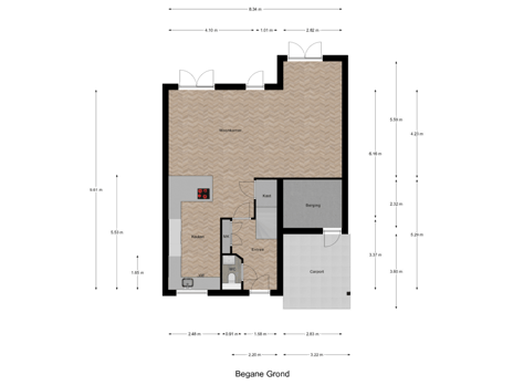Direct naast de woning bevindt zich de carport en aangebouwde berging: een ideale plek voor alles wat u graag binnen handbereik heeft, maar niet in huis wilt zetten. Denk aan fietsen, (tuin)gereedschap, opbergboxen of seizoensspullen. Dankzij de nagenoeg directe toegang via de carport loopt u er zo naartoe — handig met een regenbui wanneer u snel iets nodig heeft.