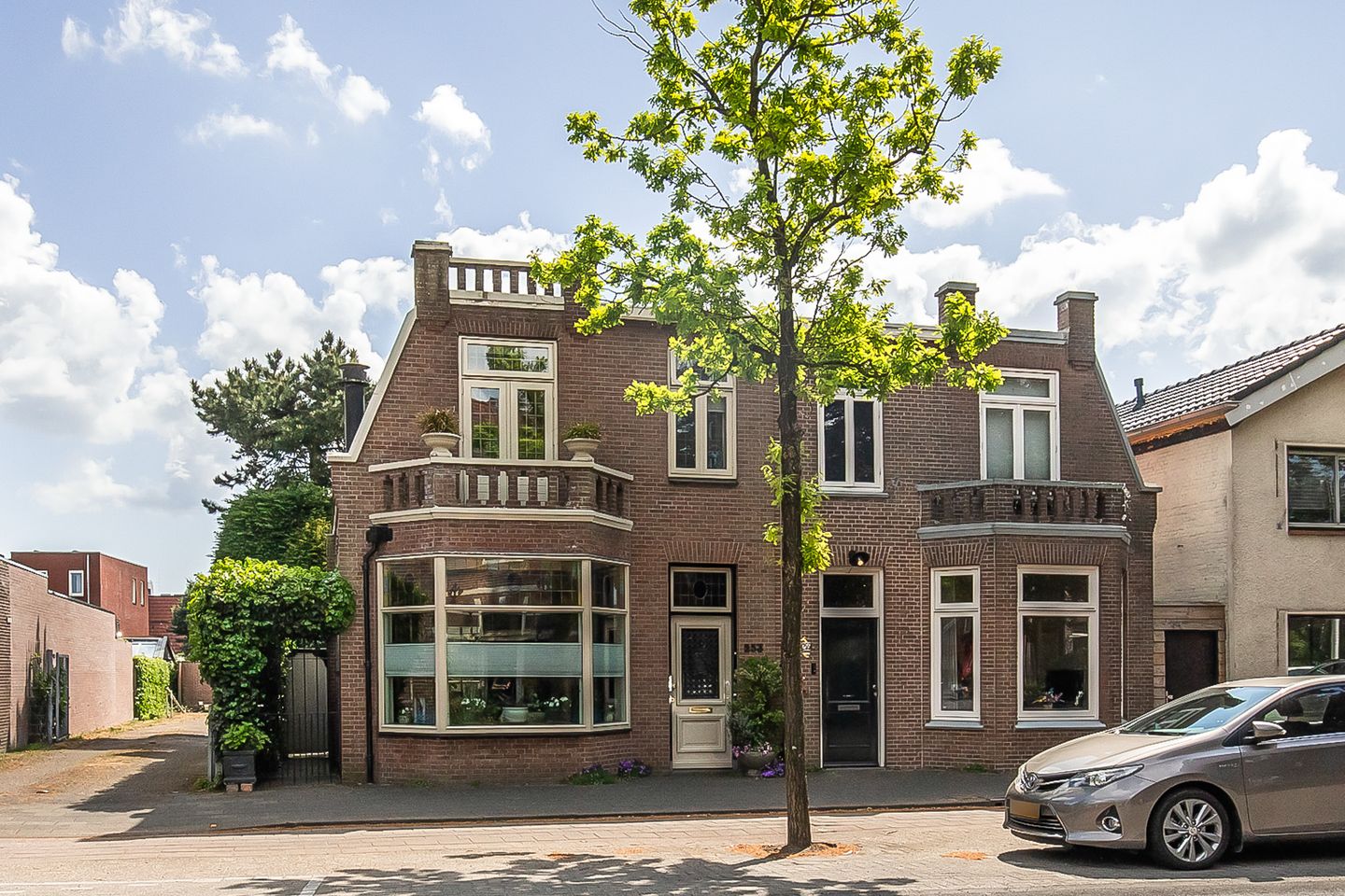 Achter de prachtige voorgevel gaat een heerlijke woning schuil. Er hangt een zeer fijne sfeer dankzij onder andere het fraaie glas-in-lood, de openhaard, het balkenplafond en de serre achter de woning. De woonkamer is voorzien van een erker en een zijraam dat voor extra licht zorgt. De halfopen keuken biedt veel ruimte en heeft toegang tot de praktische bijkeuken.