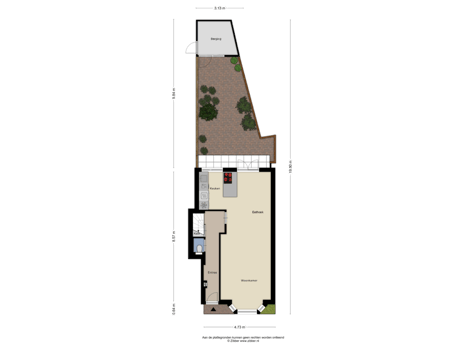 - 38 m² (9,51 meter diep en 4,80 meter breed)