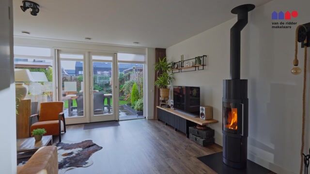 - Sfeervolle draaibare houtkachel in de woonkamer;