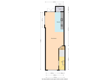Via de entree met hal, meterkast en trapopgang komt u binnen in de lichte, uitgebouwde doorzonwoonkamer. Dankzij de royale lengte van ruim 11 meter zijn er meerdere indelingsmogelijkheden, waardoor u de ruimte geheel naar eigen wens kunt inrichten. De strakke wanden en laminaatvloer zorgen voor een goede basis, terwijl de openslaande deuren aan de achterzijde veel licht binnenlaten en een prettige verbinding met de tuin creëren.