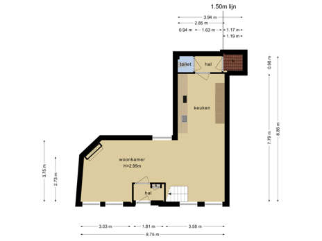 Je komt binnen via de linker voordeur. De originele glas-in-looddeur brengt je naar de sfeervolle woon-/eetkamer. Hier ligt een massieve eiken vloer, hoge kraalplinten en afgewerkt met gestuukte wanden. Het plafond is ca. 3 meter hoog en laat de originele houten balken zien. De marmeren schouw maakt het helemaal af.