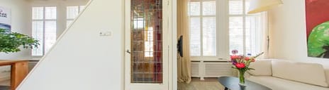 - De woning was vroeger een beneden- en bovenwoning. Twee voordeuren herinneren daaraan. De rechter voordeur is nu niet meer in gebruik