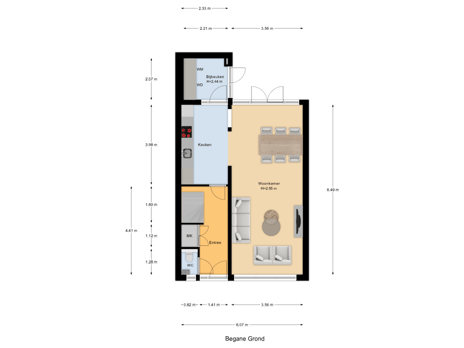 - 75 m² (11,52 meter diep en 8,62 meter breed)