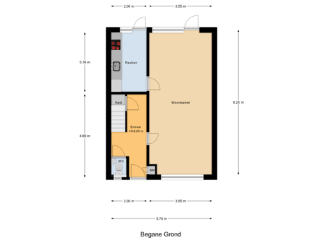 - 55 m² (10,94 meter diep en 5,92 meter breed)