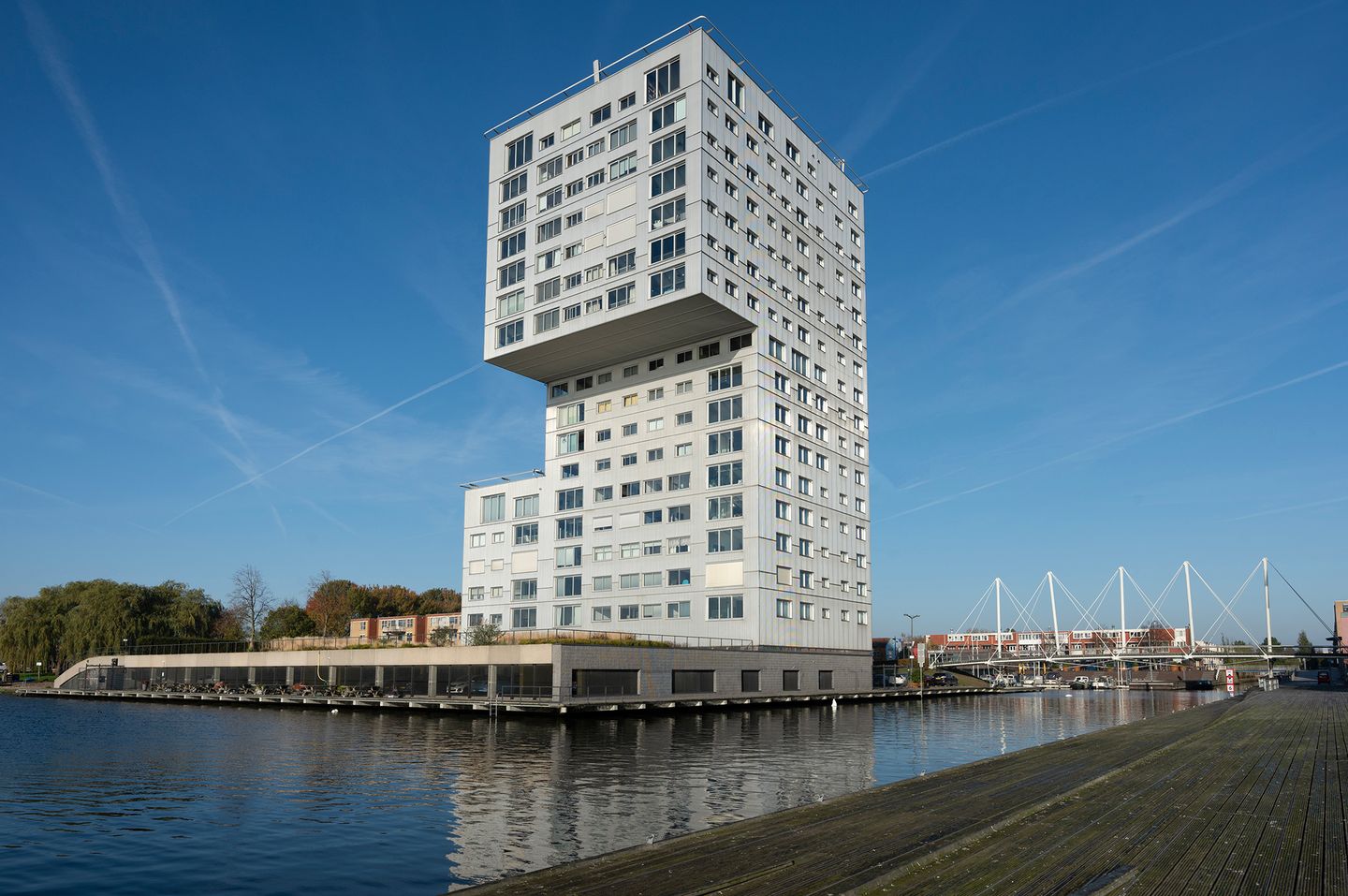 Dit lichte en aantrekkelijk ingedeelde 3-kamerappartement is gesitueerd op de 13e verdieping van het markante appartementencomplex Silverline en biedt een fraai uitzicht over het Weerwater. Het complex is ontworpen door het gerenommeerde architectenduo Claus en Kaan (OMA) en is gerealiseerd in de periode 1999–2001. Rondom het gebouw is een verzorgde tuin aangelegd die bijdraagt aan een prettige woonomgeving. Aan de waterzijde bevindt zich een afgeschermde loopsteiger met zitgelegenheden, waar u in alle rust kunt genieten van het uitzicht over het water. Via de zwemvoorziening is het mogelijk om in de zomer een verkoelende duik te nemen, terwijl het water in de winter uitnodigt tot schaatsplezier. Bij het appartement horen een eigen parkeerplaats en een fietsenberging. De ligging is bijzonder centraal: het Silverline-complex bevindt zich in het centrum van Almere, met een uitgebreid aanbod aan winkels, horeca en culturele voorzieningen op loopafstand. Ook onder meer het Flevoziekenhuis en de Schouwburg Almere zijn nabij gelegen. De bereikbaarheid is uitstekend dankzij de gunstige ligging ten opzichte van het station Almere Centrum, openbaar vervoer en de uitvalswegen richting de A6 en A27.