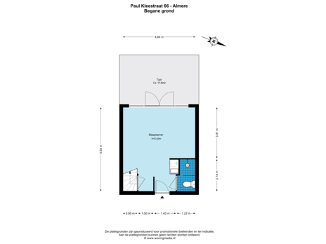 - 18 m² (3,50 meter diep en 5,00 meter breed)