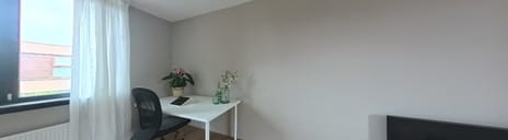 Entree met aansluitend de meterkast, een handige waskamer, een badkamer met een douche en een wastafel. Tevens heeft u vanuit de hal doorgang tot een ruime slaapkamer en de sfeervolle woonkamer.
