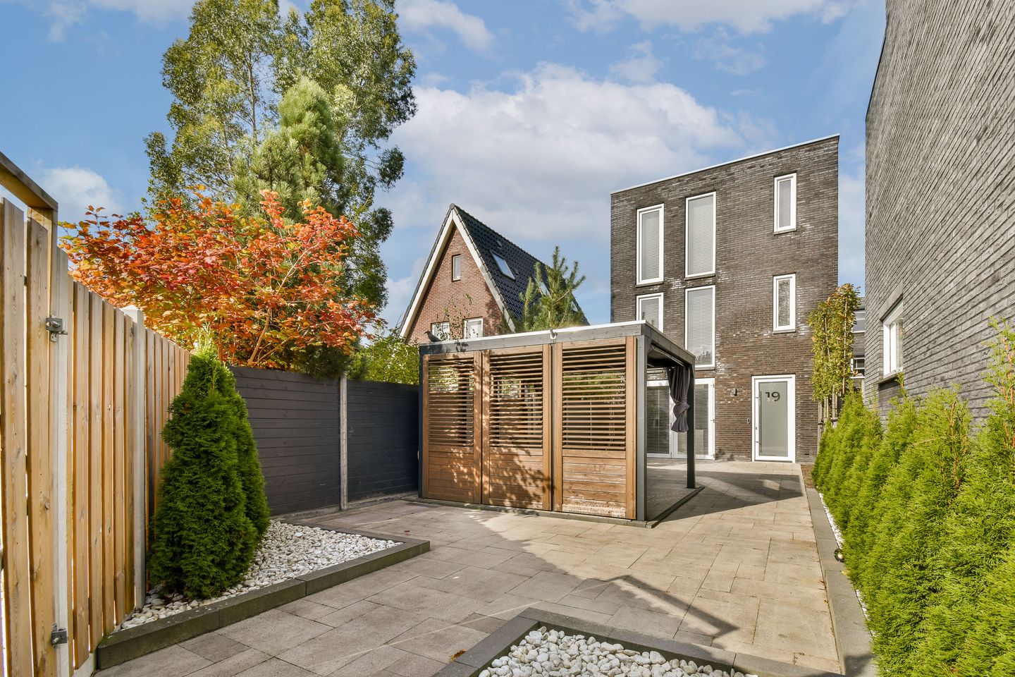 Via de schuifpui in de woonkamer heb je toegang tot de achtertuin. Deze is net als de voortuin voorzien van tegels en is netjes afgewerkt en onderhouden. De achtertuin heeft een berging en er is ook een buitenkraan en een achterom. De ligging op het noordwesten maakt dat je vooral in de middag en avonduren zon in de tuin hebt.