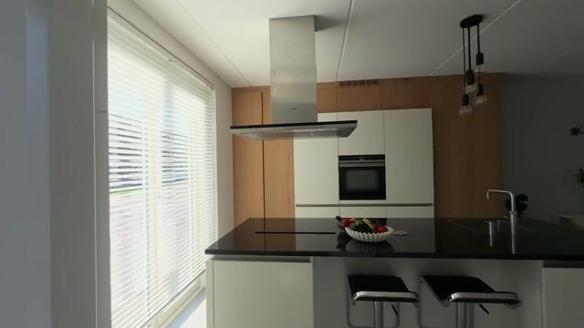 De woonkamer met open keuken heeft een oppervlakte van ruim 45 m², met fraaie lichtinval en een uitstekende afwerking. Aan de achterzijde bevindt zich de zitkamer met maatwerk wandmeubel en een schuifpui naar de tuin. Het eetgedeelte staat in directe verbinding met de open keuken. Het kookeiland met zitgelegenheid vormt een echte blikvanger, net als de grote kastenwand in een smaakvolle kleurencombinatie. De keuken is voorzien van diverse Siemens inbouwapparatuur, waaronder een inductiekookplaat, afzuigkap, vaatwasser, combi-oven, koel-/vriescombinatie en Quooker. De afzuigkap is aangesloten op een afvoer naar buiten.