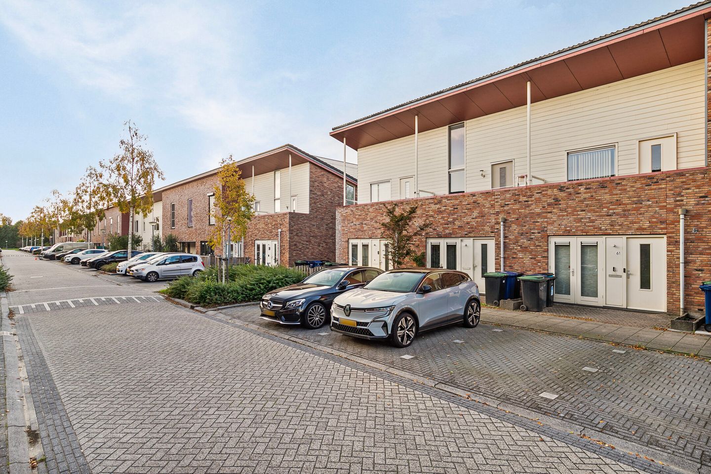 Conveniently located at the edge of the neighbourhood, near the Tussenring with connections to the renovated A6 and A27. At the end of the street runs the bus lane, so public transport is also nearby. Furthermore, within walking distance in the neighbourhood can be found an Albert Heijn for daily groceries and a 24/7 Spar Express, as well as nursery, primary school, swimming pool and gym.