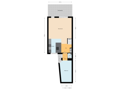 - 70 m² (14,00 meter diep en 5,00 meter breed)