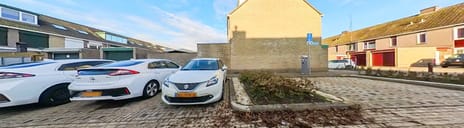 De voortuin is in 2024 opnieuw aangelegd en biedt parkeergelegenheid op eigen terrein met een elektrische laadpaal.