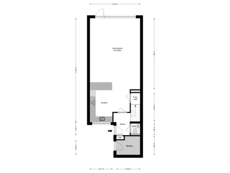 - Entree met meterkast met aansluiting glasvezel, hangend toilet met fontein en toegang tot het leefgedeelte trap naar de 1e verdieping.