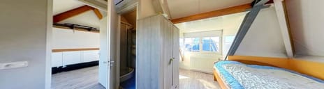 Op de tweede verdieping bevindt zich een royale kamer die uitstekend geschikt is als slaap- of logeerkamer. Daarnaast is er een separate ruimte die kan dienen als ontspannings- of sportruimte. Op deze etage is tevens een tweede badkamer aanwezig, voorzien van een douche, toilet en wastafel. De verdieping beschikt over veel bergruimte, is uitgerust met een aircosysteem en profiteert van extra lichtinval door een dakkapel en meerdere Velux-dakramen.