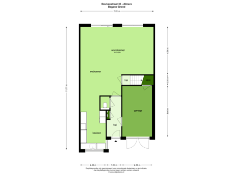 - 77 m² (11,00 meter diep en 7,00 meter breed)