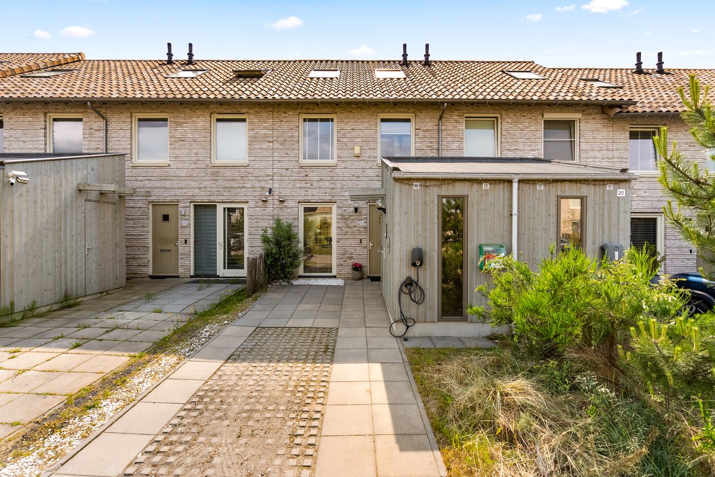- Buitenzonwering, dakraam, glasvezelkabel, mechanische ventilatie, natuurlijke ventilatie, schuifpui, TV kabel, en zonnepanelen
