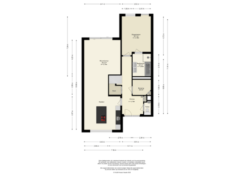 - 46 m² (5,70 meter diep en 8,07 meter breed)