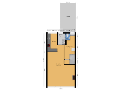 - 109 m² (19,00 meter diep en 5,75 meter breed)