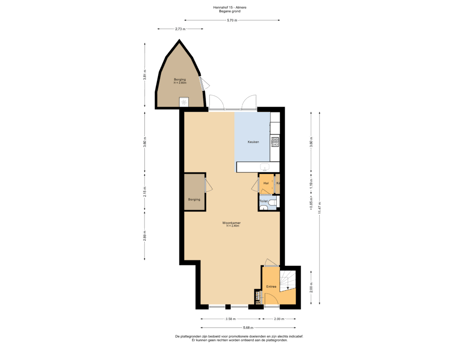 - 34 m² (6,00 meter diep en 5,70 meter breed)