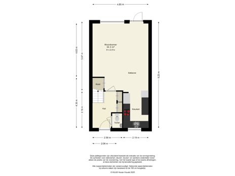 - 75 m² (15,00 meter diep en 5,00 meter breed)