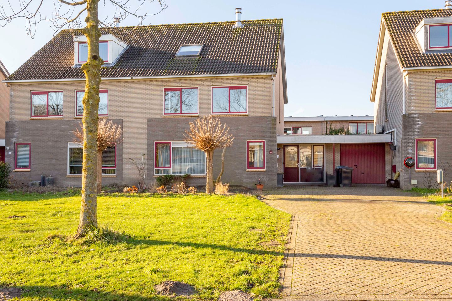 Spacious semi-detached house with bedroom on the first floor (formerly garage). Entrance / hall with meter cupboard, toilet, staircase and access to the spacious living room and garden-oriented kitchen. The first floor part is equipped with marble with floor heating, plastered walls and a fireplace with stone hearth. The L-shaped kitchen features light fronts, granite worktop, fridge/freezer, apothecary cupboard, ceramic hob, microwave, dishwasher and a corner carousel. A utility room is accessible from the kitchen with walk-through to the bedroom (formerly the garage). The garden of the house is accessible through a large sliding door and is maintenance-friendly landscaped.