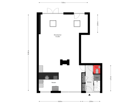 - 75 m² (9,94 meter diep en 7,56 meter breed)