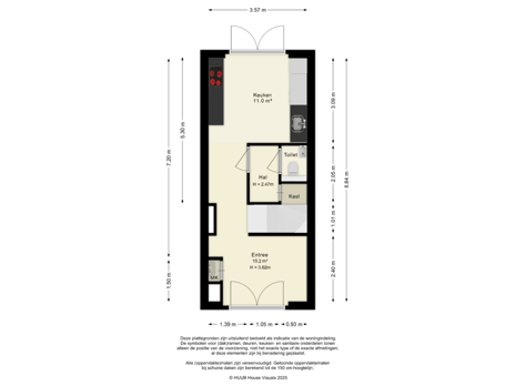 - 62 m² (16,00 meter diep en 3,90 meter breed)