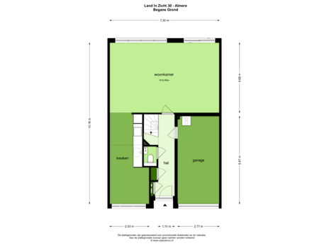- 91 m² (12,50 meter diep en 7,30 meter breed)