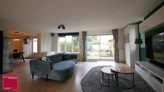 Parkeren kan comfortabel op eigen terrein en er is een laadpaal aanwezig voor een elektrische auto. Via de hal met vernieuwde 3-fasen meterkast en toilet kom je, door stijlvolle zwarte stalen deuren, in de royale woonkamer.