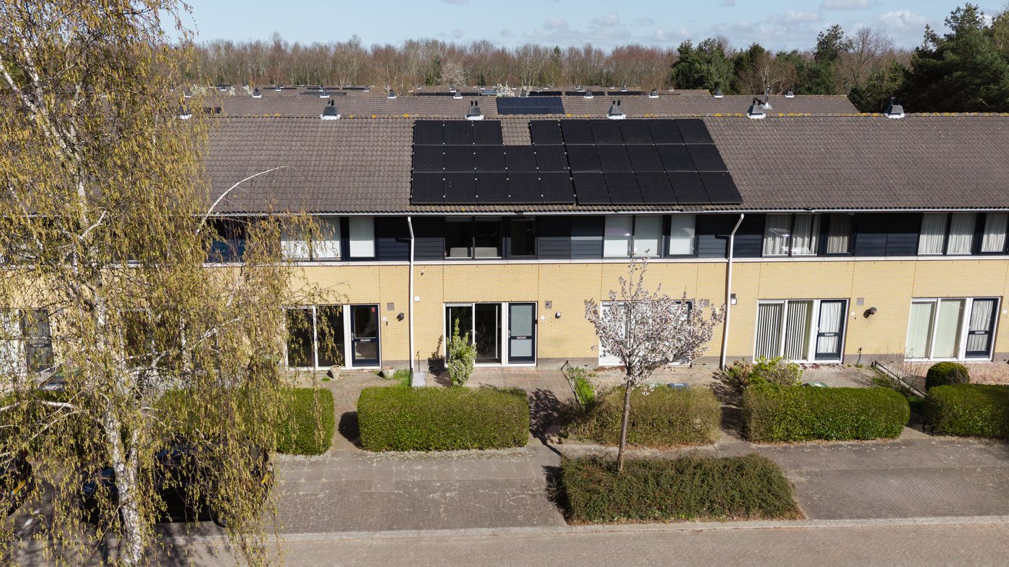 Bij aankomst word je verwelkomd door een nette voortuin, welke deels is afgeschermd door groen en zorgt voor een fijne privacy. De woning heeft grote raampartijen die tot de grond reiken, waardoor er veel natuurlijk licht naar binnen valt en de woning een lichte en open uitstraling heeft. De woning is voorzien van maar liefst 14 zonnepanelen, die bijdragen aan de energiezuinigheid en een lagere energierekening.