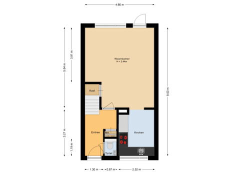 - 63 m² (12,60 meter diep en 5,00 meter breed)